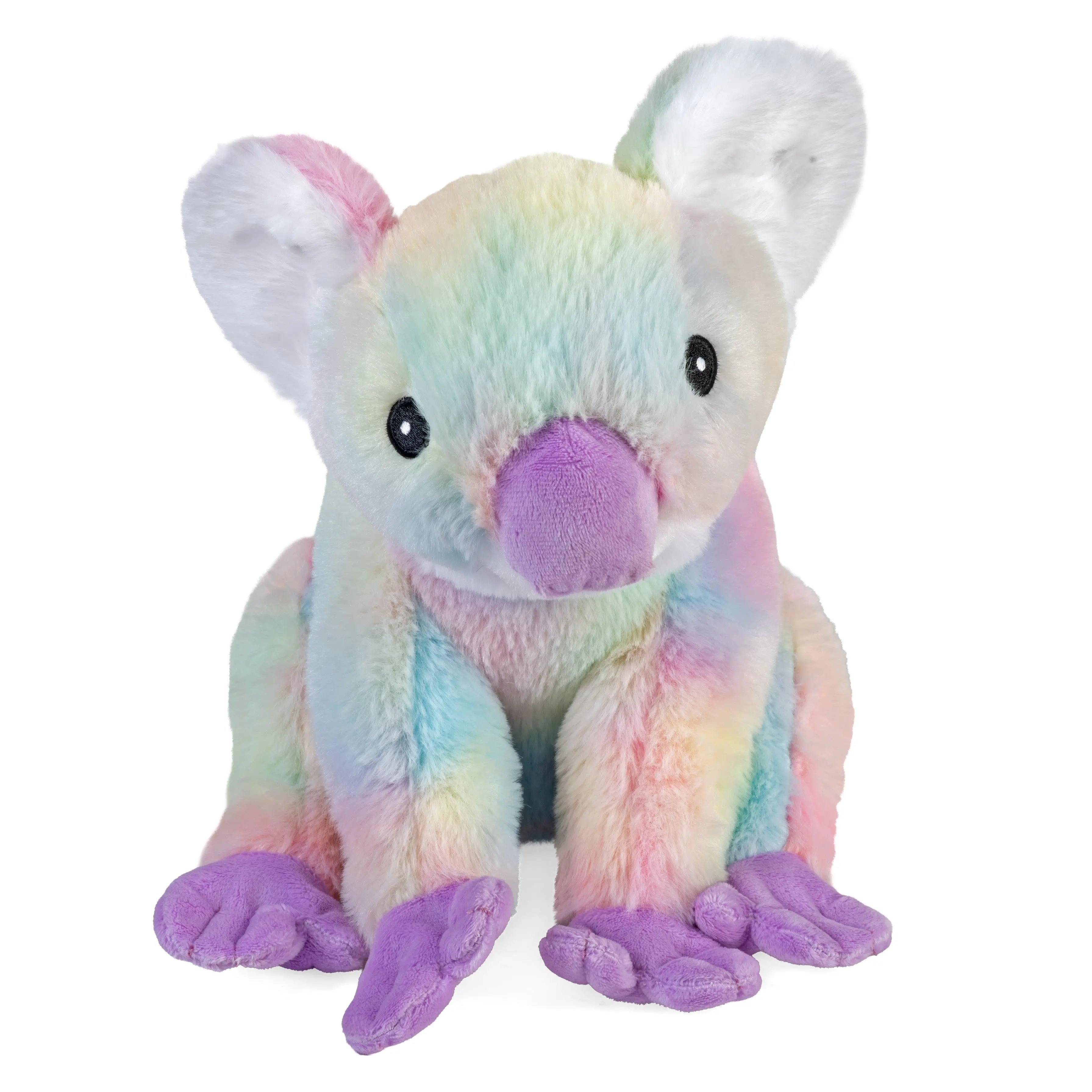 • Cuddly Koala Design: Inspired by the iconic koala, this plush features large round ears, a soft snout, and a sweet expression in calming rainbow tones for a peaceful, lovable appearance.
